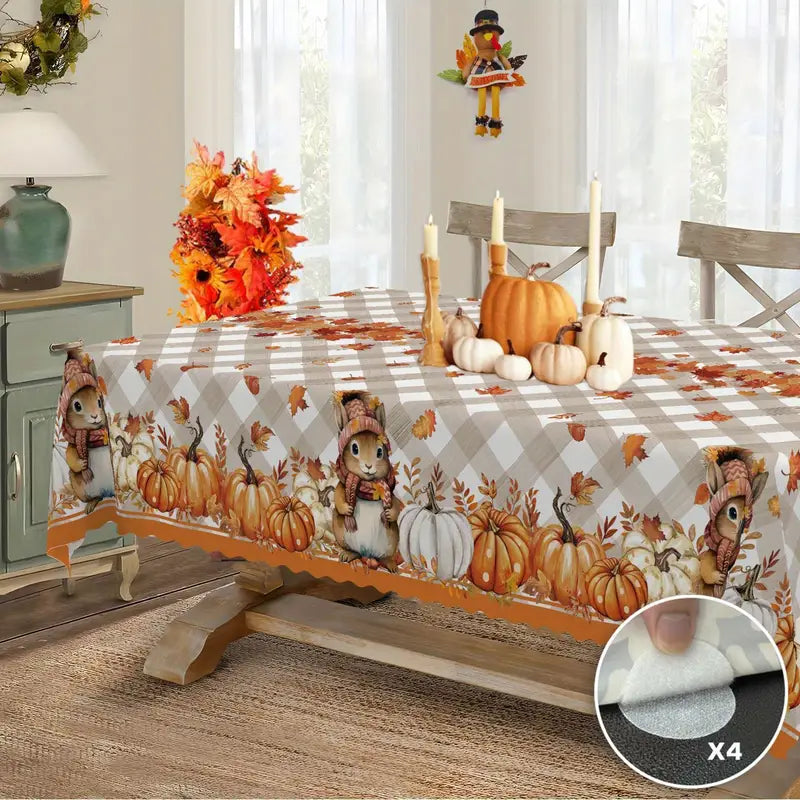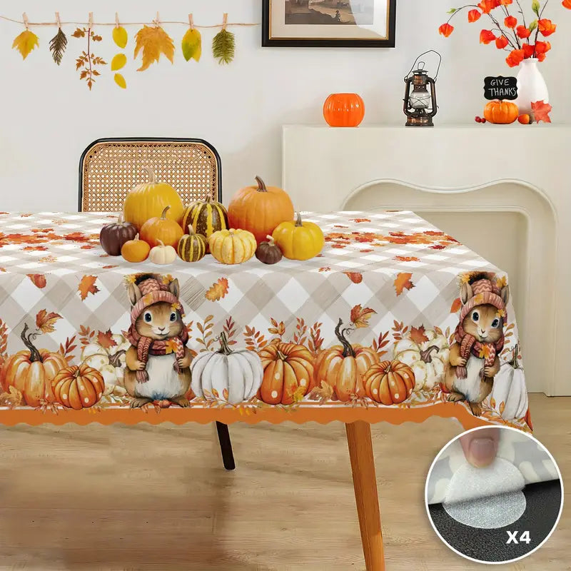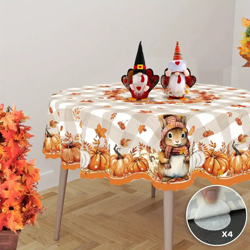 Acornia™ | Rustic Thanksgiving Tablecloth with Squirrel & Pumpkin Design