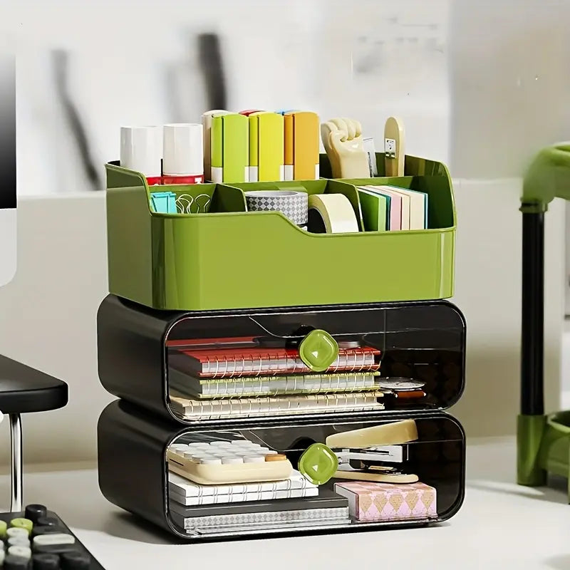 Averis™ | Multi-Tier Desk Organizer – PP Storage Box with Drawers, Green & Black, Portable Design