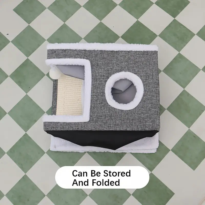 Comfurr™ | Dual-Layer Cat Condo with Scratching Board & Foldable Indoor Bed