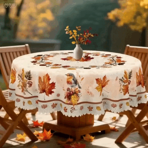 The autumn maple leaves and chick print design is both playful and elegant, creating a warm and inviting environment for your guests. Whether you're hosting a Thanksgiving dinner, a family gathering, or just enjoying the beauty of the season, Mapleia™ brings a festive touch to any occasion.