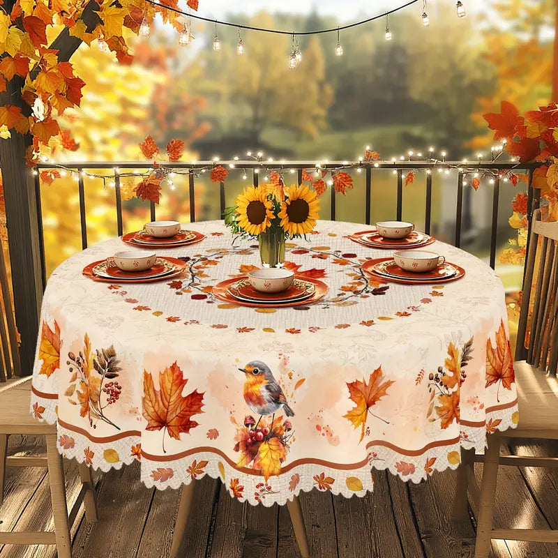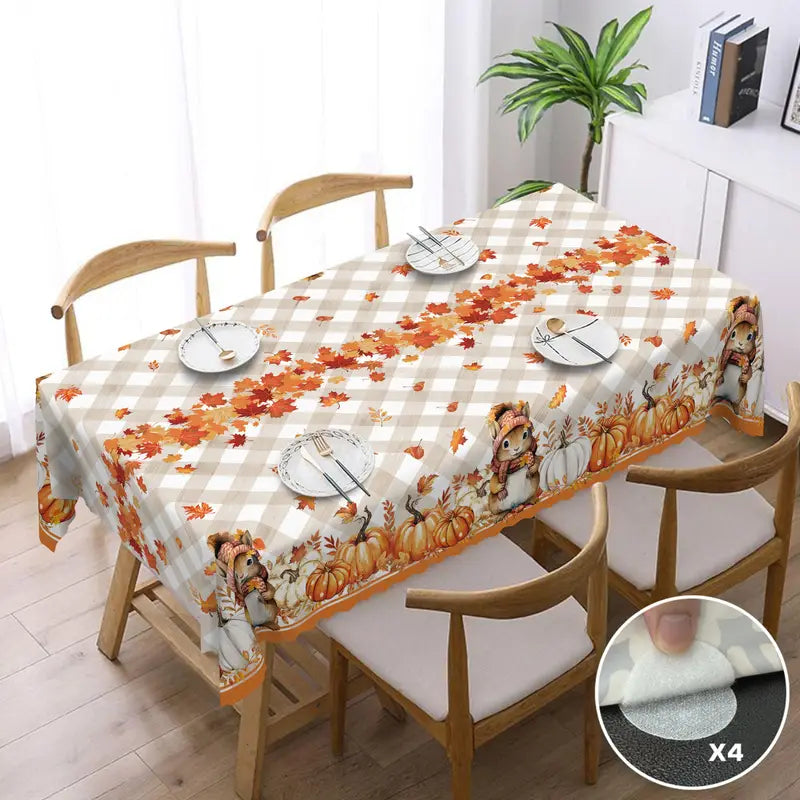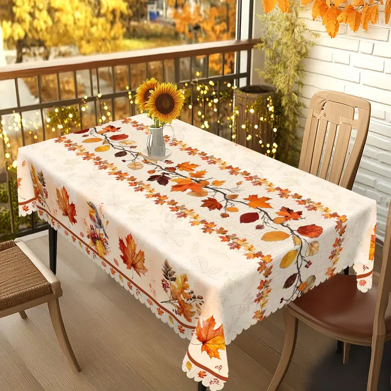 Mapleia™ | Autumn Maple Leaf & Chick Print Tablecloth Set – Thanksgiving Party Decor