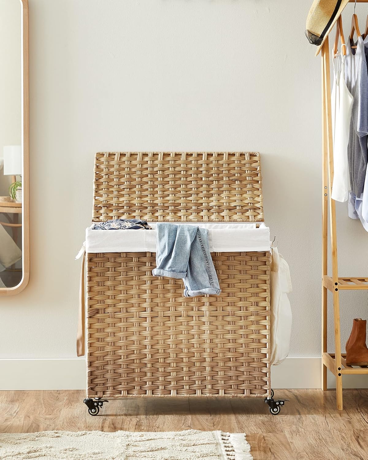 Unlike ordinary laundry baskets, Rattina™ combines modern design with practical features. Its hand-woven style adds elegance, while the removable bag, lid, and durable wheels make laundry effortless and hygienic.