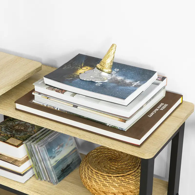 Features dual shelves to keep essentials like books, remotes, or drinks within reach.