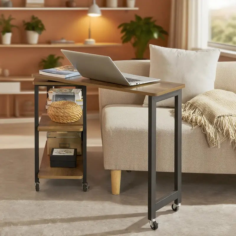 TurnEase™ | Sofa Side Table, Rotating Design, Rolling Base, Dual Storage Shelves & Portable